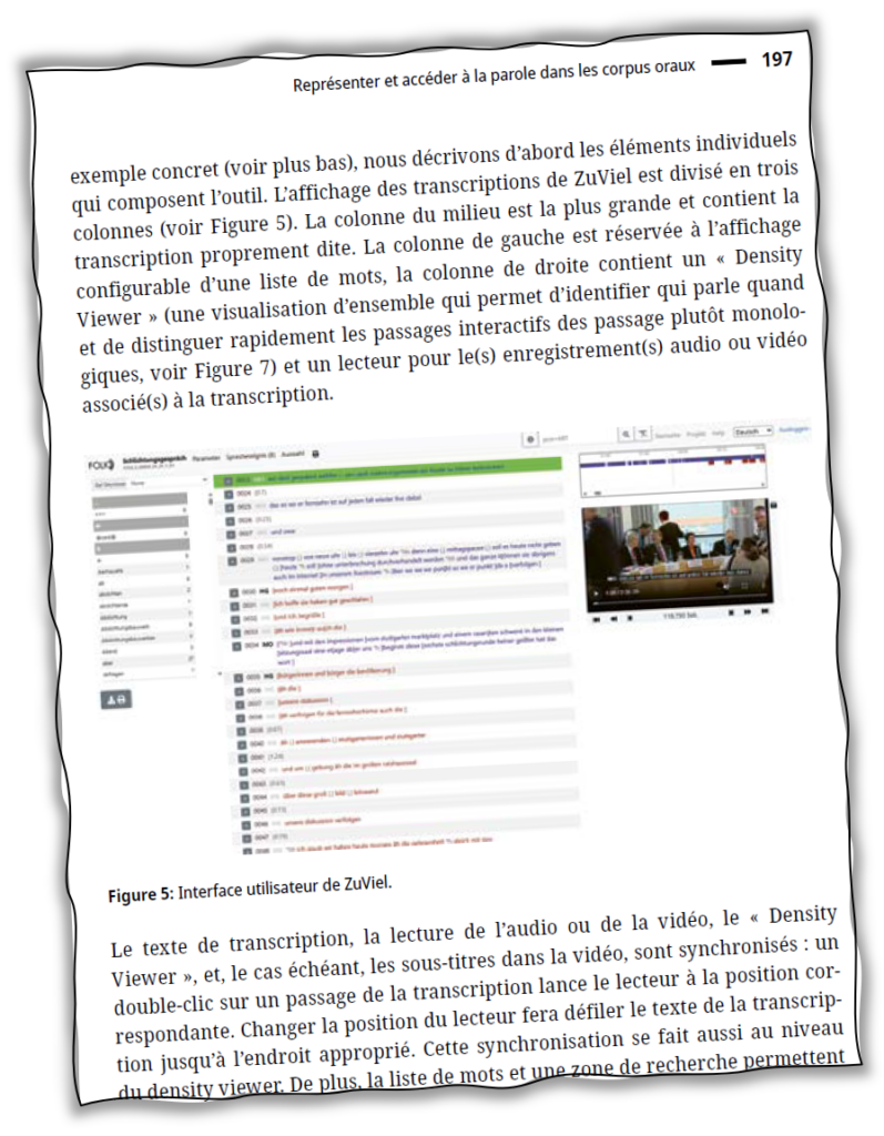 Schmidt, Thomas (2025): Représenter et accéder à la parole dans les corpus oraux : diversification et adaptation des méthodes et technologies. Représenter la parole: Apports à une dimension fondamentale de la linguistique, edited by Layal Kanaan-Caillol, Céline Dugua and Annette Gerstenberg, De Gruyter, 2026, pp. 185-208.
